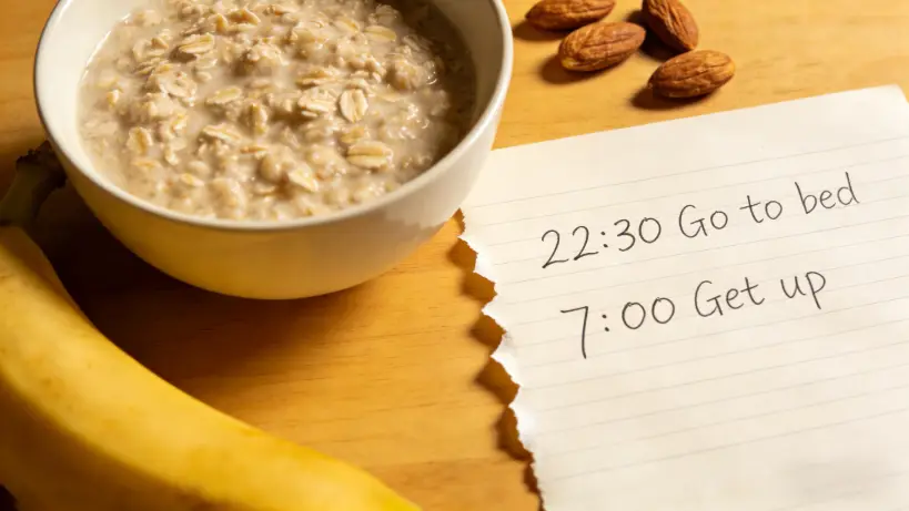 2. Wake-up: Get up at 7–8 AM daily, no exceptions. Open curtains to let in sunlight and reset your body clock.
